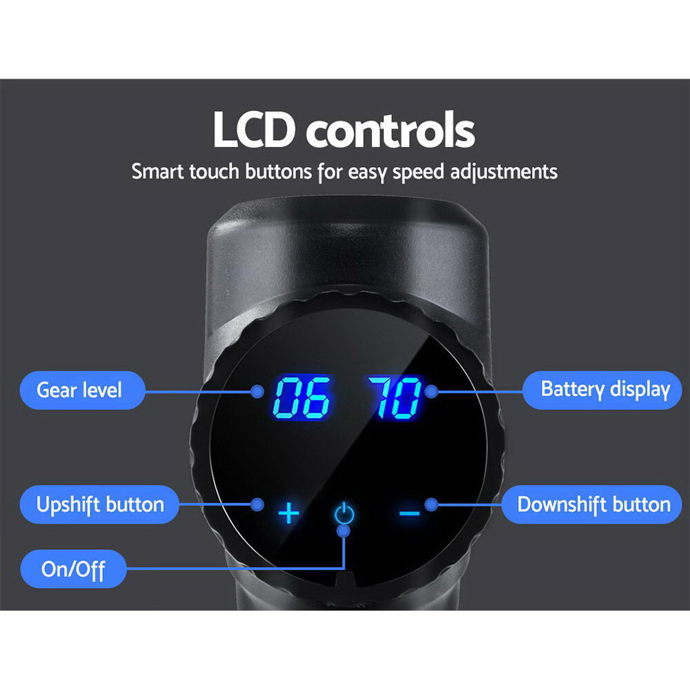 Everfit Deep Tissue Massage Gun – 30 Speed Percussion Massager with 6 Heads (Black)